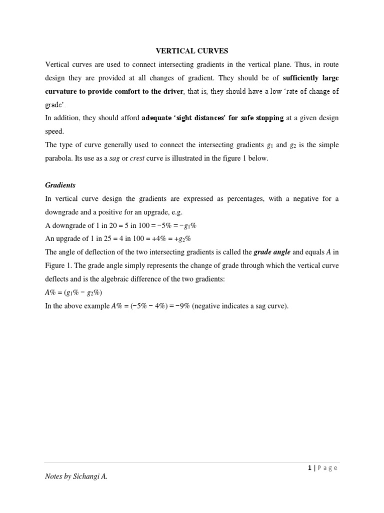 Vertical curves are used to connect intersecting gradients in the vertical plane. Thus, in route