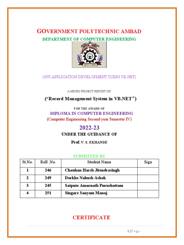 inVB.NET” is written and submitted by us to Government Polytechnic Ambad during Year