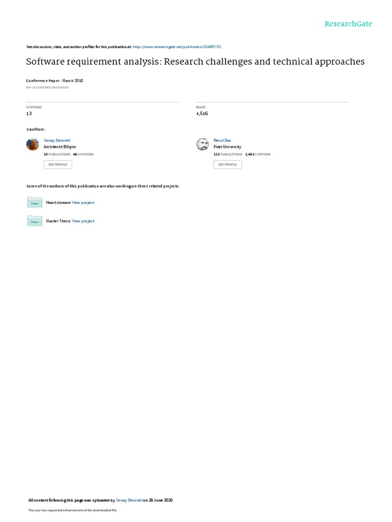 change, and management of the requirements. In traditional Symposium (IDAP), Inonu University, Malatya, 2017, pp. 1–10.