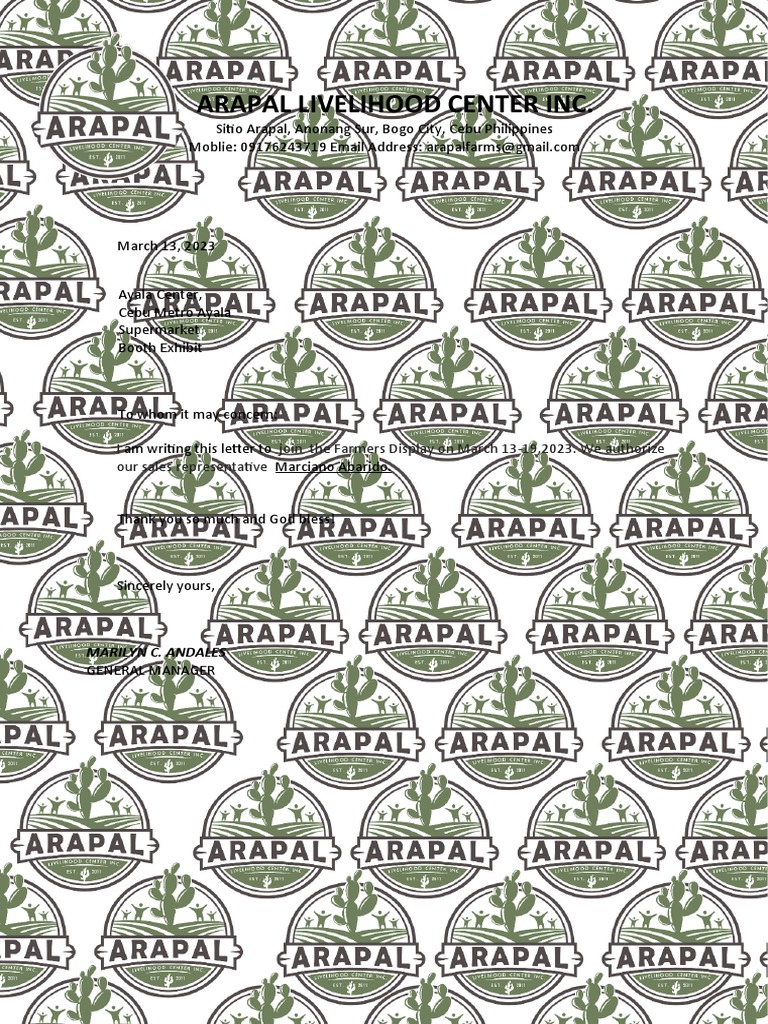 Moblie: 09176243719 Email Address: arapalfarms@gmail.com