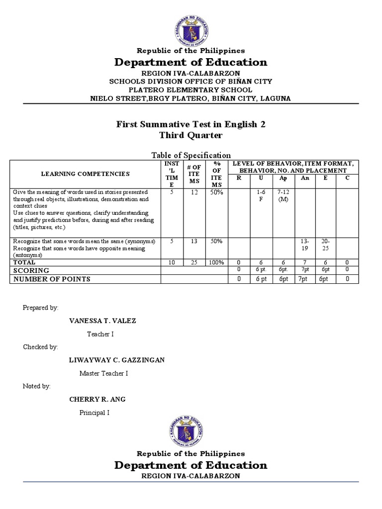 First Summative Test in English 2