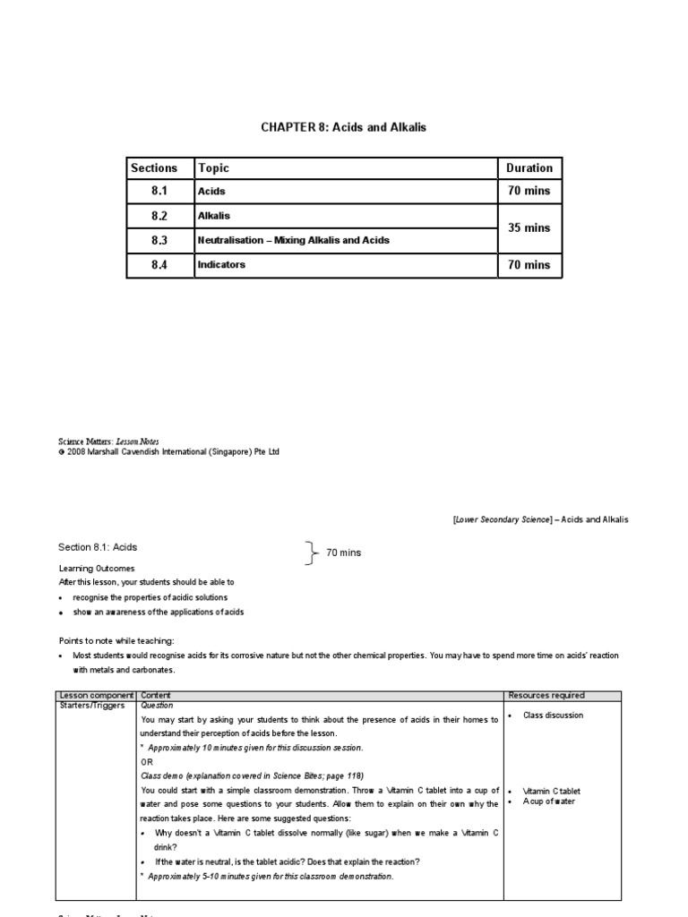 Section 8.3: Neutralisation – Mixing Alkalis and Acids 35 mins