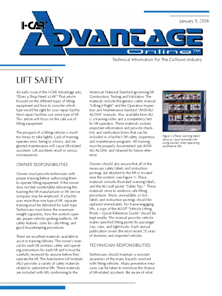 An early issue of the I-CAR Advantage asks, American National Standard governing lift