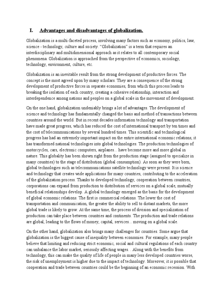 On the one hand, globalization undeniably brings a lot of advantages. The development of
