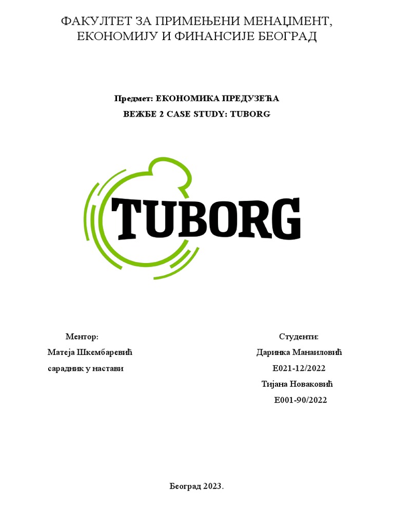 ВЕЖБЕ 2 CASE STUDY: TUBORG