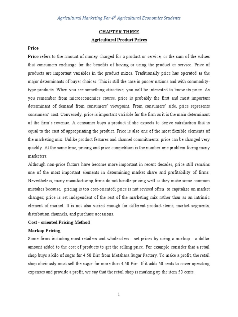 Pricing Strategies in Agriculture