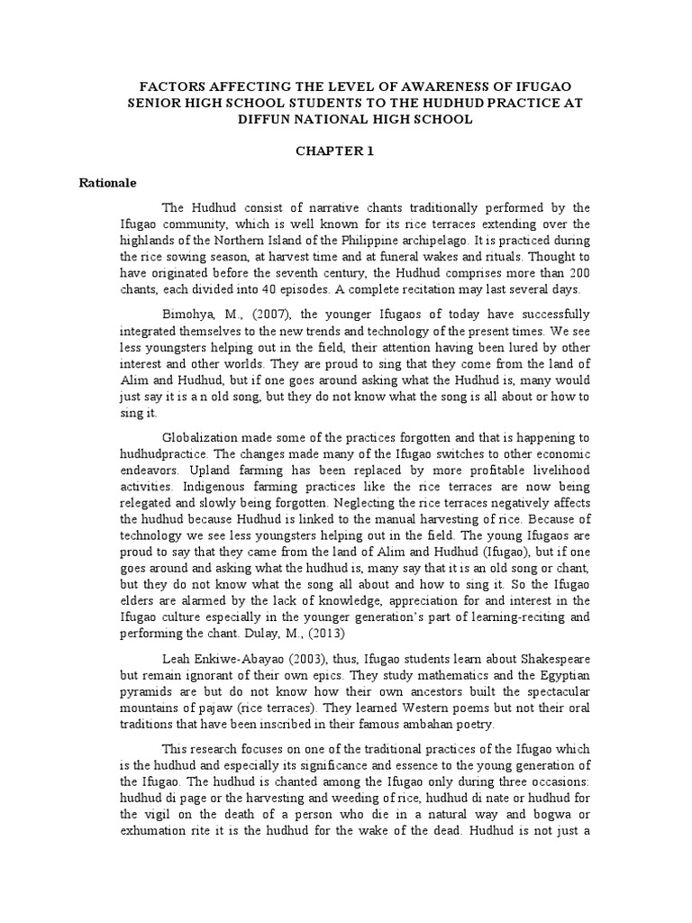 that affect the level of awareness of the Ifugao senior students towards Hudhud practice