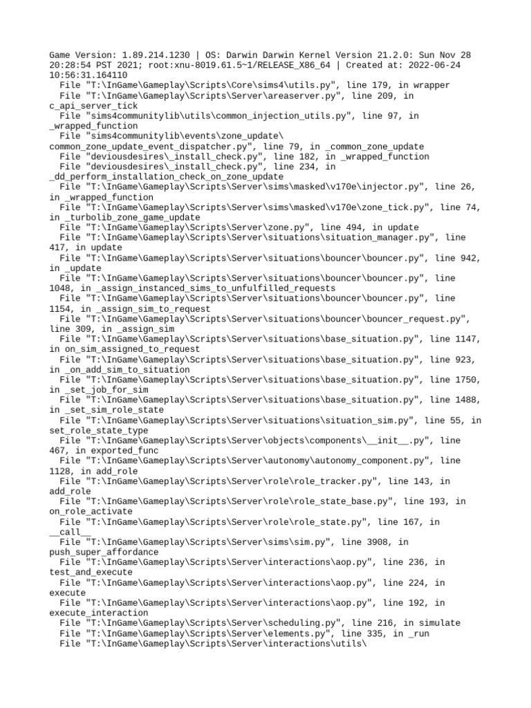 File "T:\InGame\Gameplay\Scripts\Server\sims\masked\v170e\zone_tick.py", line 74,