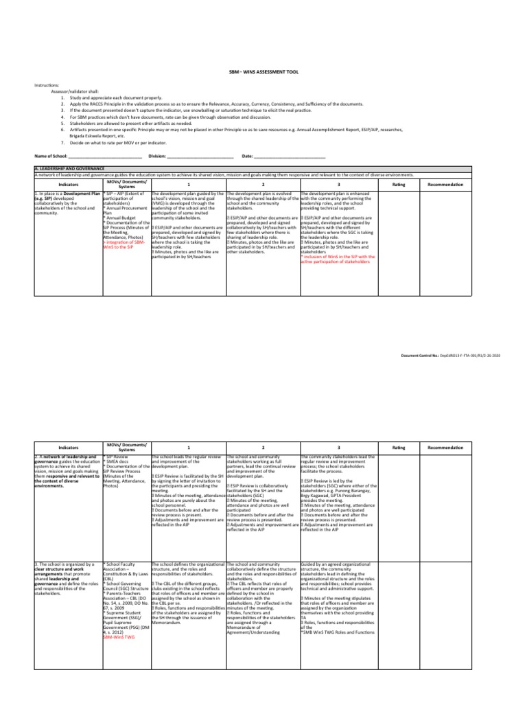 SBM - WINS ASSESSMENT TOOL