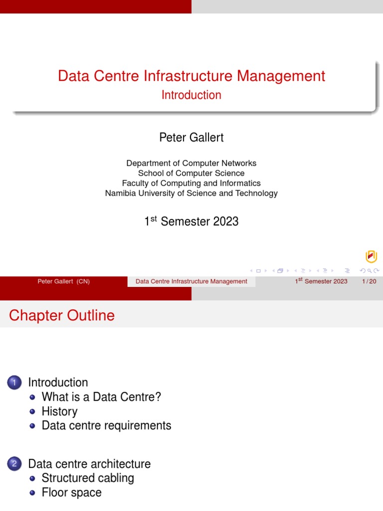 Peter Gallert (CN) Data Centre Infrastructure Management 1st Semester 2023 1 / 20