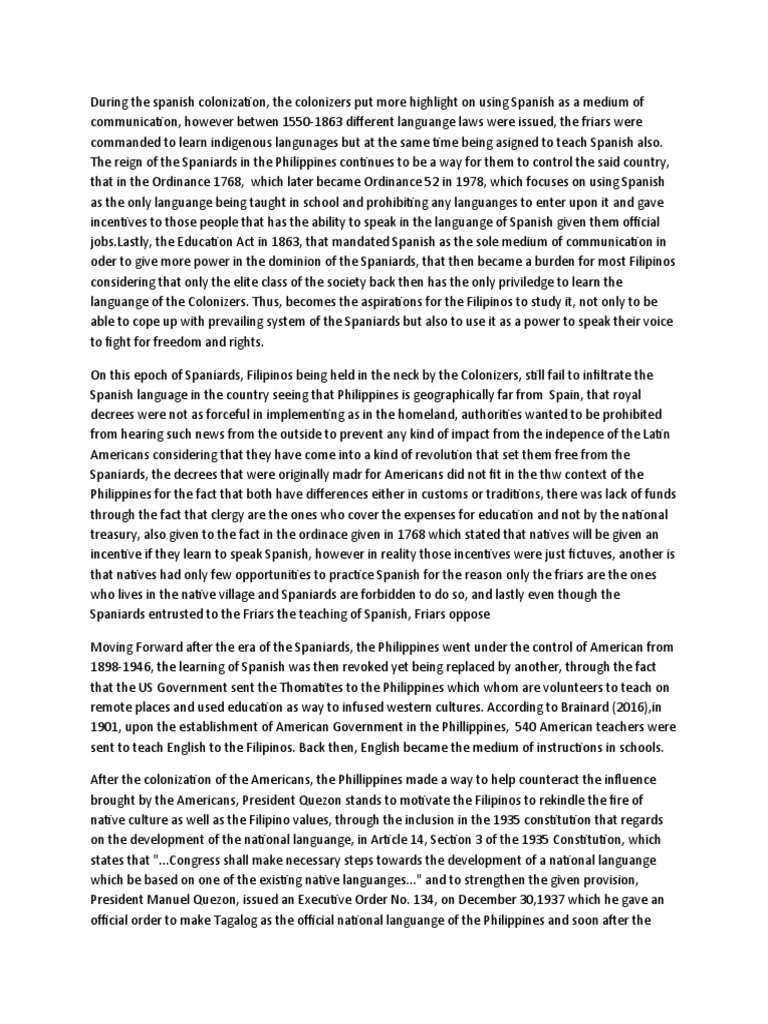 [Link], the Education Act in 1863, that mandated Spanish as the sole medium of communication in