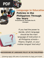 Education" that gives emphasis on the separation of English and Filipine being taught and use as the