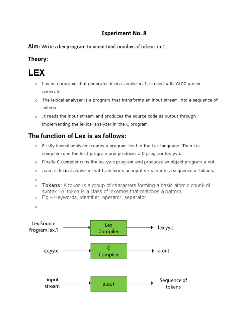 o Finally C compiler runs the lex.yy.c program and produces an object program a.out.