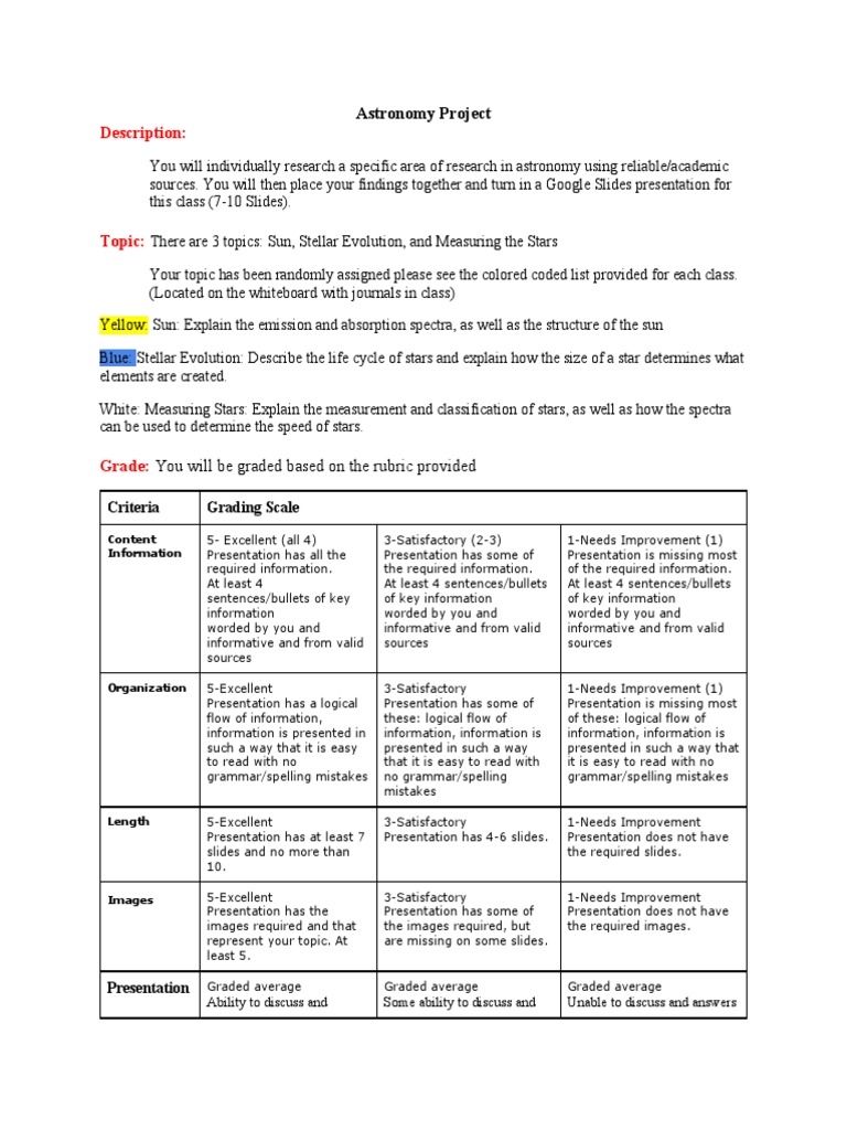You will individually research a specific area of research in astronomy using reliable/academic
