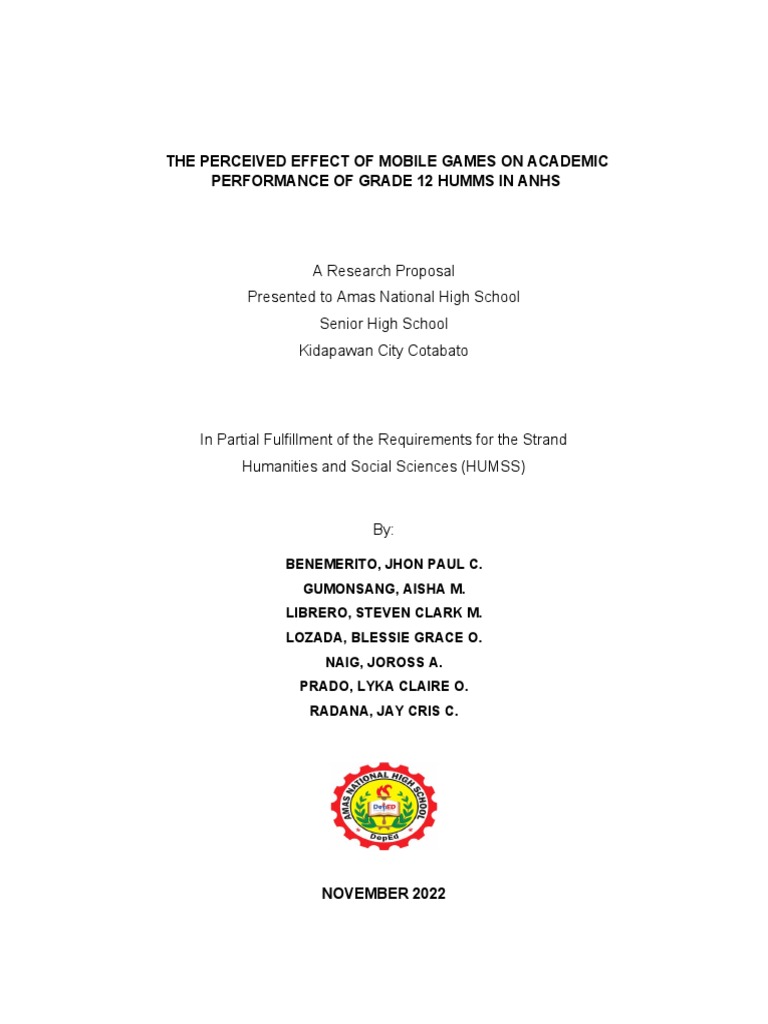 of mobile games in academic performance among the Grade 12 HUMSS students in Amas