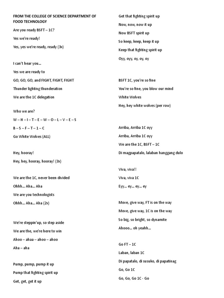 GO, GO, GO, and FIGHT, FIGHT, FIGHT BSFT 1C, you’re so fine