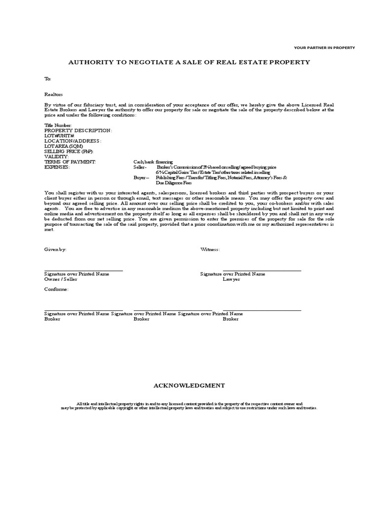 Estate Brokers and Lawyer the authority to offer our property for sale or negotiate the sale of the property described below at the