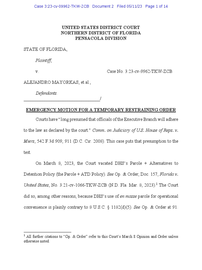 , v. Case No. 3:23-cv-9962-TKW-ZCB ALEJANDRO MAYORKAS, et al.,
