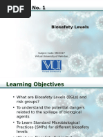 Biosafety Level 1 is suitable for work involving wellcharacterized agents not