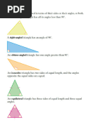 - Any exterior angle of a triangle is equal to the sum of the two interior angles not adjacent