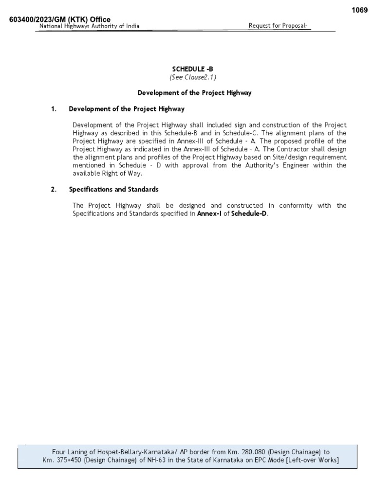 Project Highway are specified in Annex-III of Schedule – A. The proposed profile of the