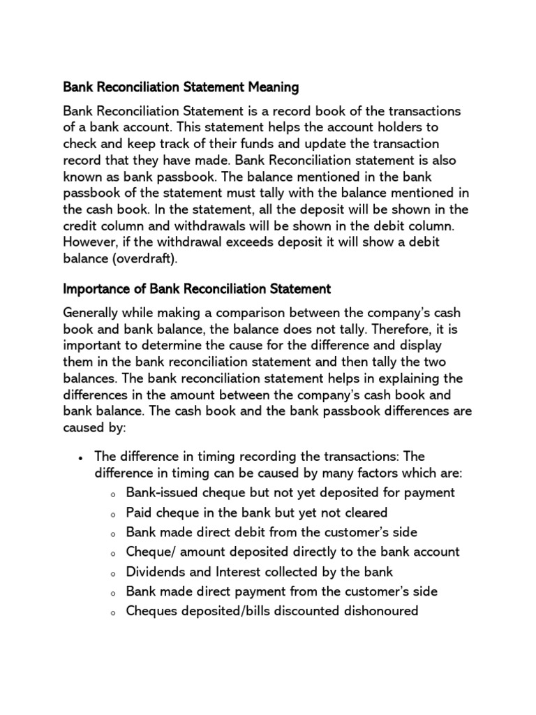 Bank Reconciliation Statement Meaning