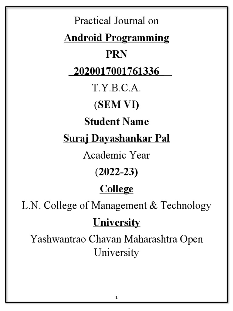 Subject: - Android Programming