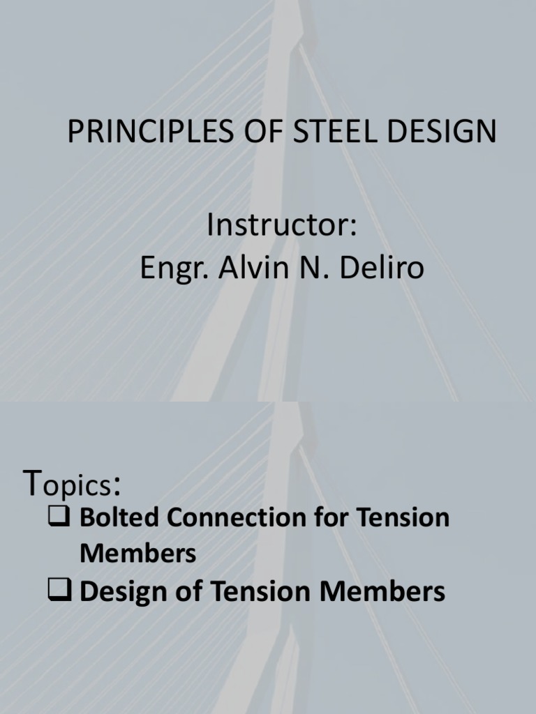 by 0.6FyAg or 0.5FuAe (NSCP 2001), or by allowable load on the bolts