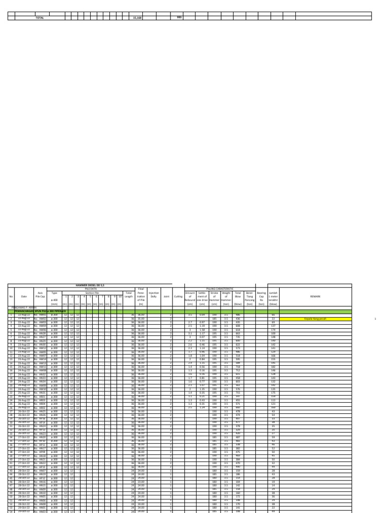 2 22-Aug-22 No. AM02 ø.300 12 12 12 - - - - - - - 36 35.00 2 185 3.5 436 22 Kepala tiang pecah 1