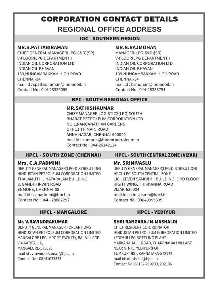Madurai - 625008 Ramesh KP DGM - LPG Region rameshkp@hpcl.in 0452 - 2488588 7411021707