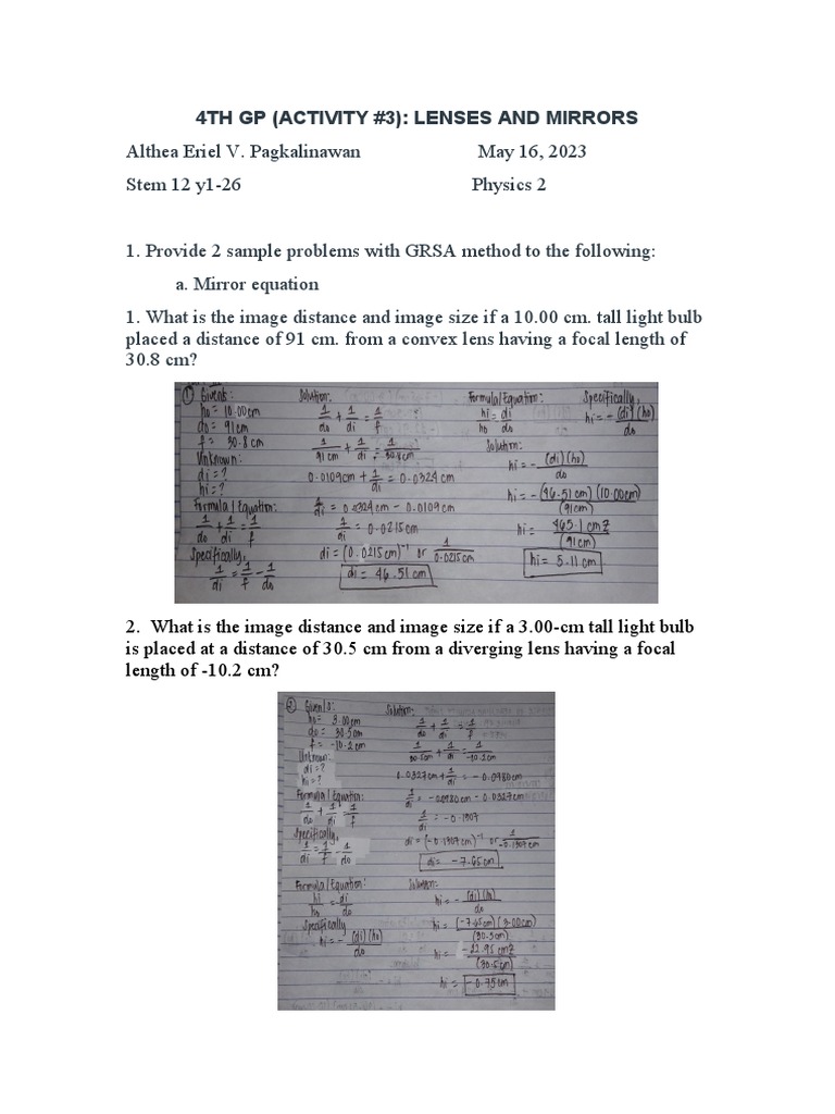 4TH GP (ACTIVITY #3): LENSES AND MIRRORS