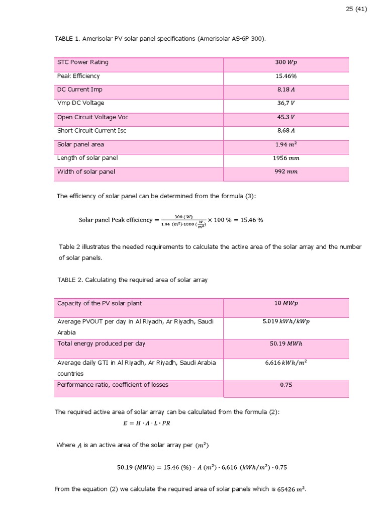 Table 3 illustrates how to calculate the required land area of a 10 MW PV solar power plant in Al Riyadh, Ar