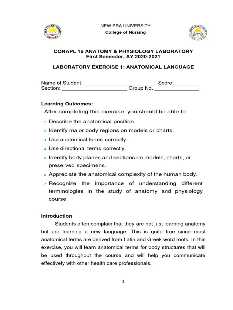 LABORATORY EXERCISE 1: ANATOMICAL LANGUAGE
