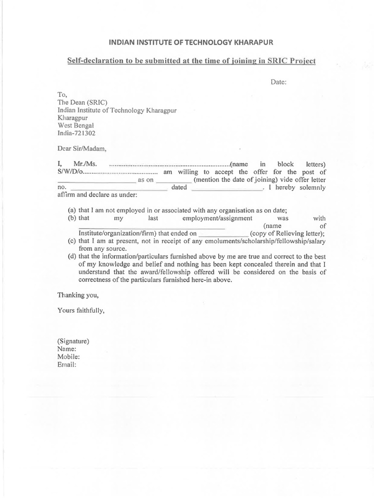 0 ratings0% found this document useful (0 votes) 129 views1 pageSELF Declaration Form