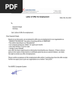 son (mention the date of joining) vide offer letter