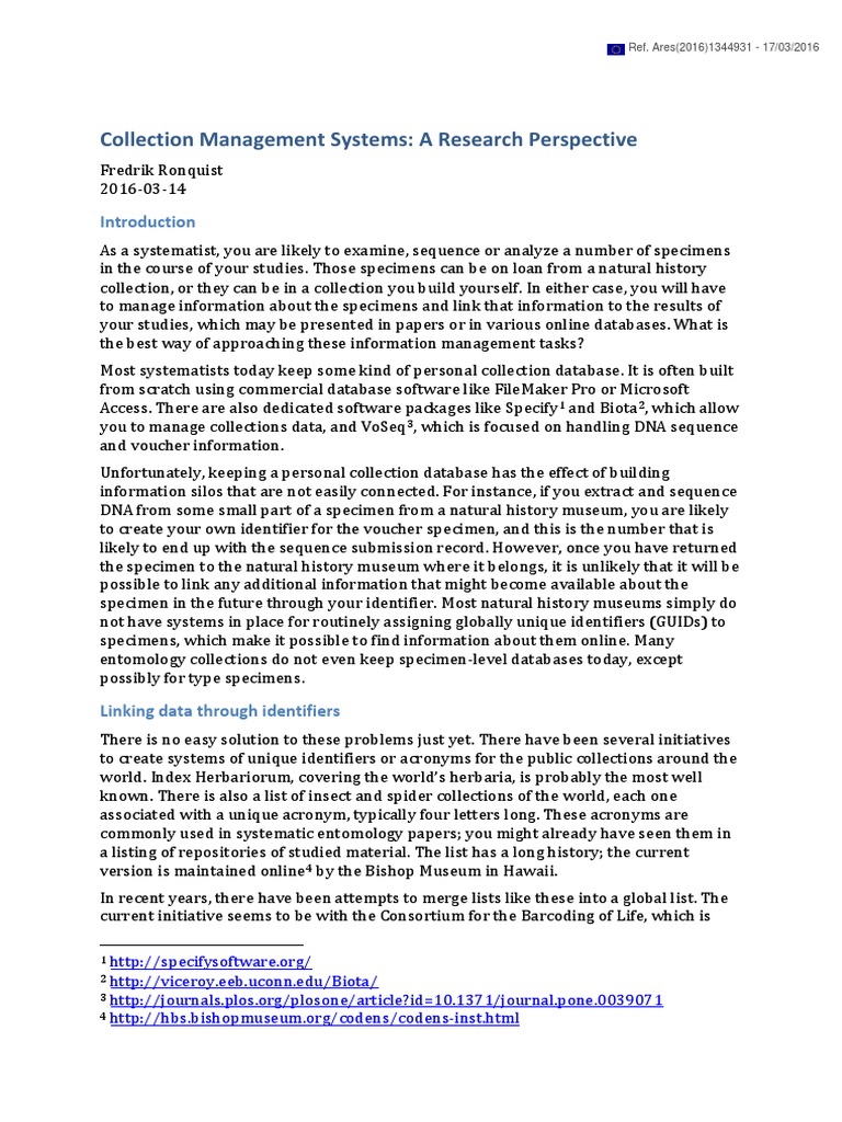 specimens in natural history collections and be sure you can link this information online