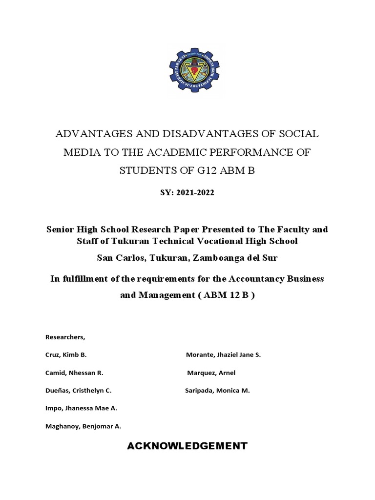 Senior High School Research Paper Presented to The Faculty and