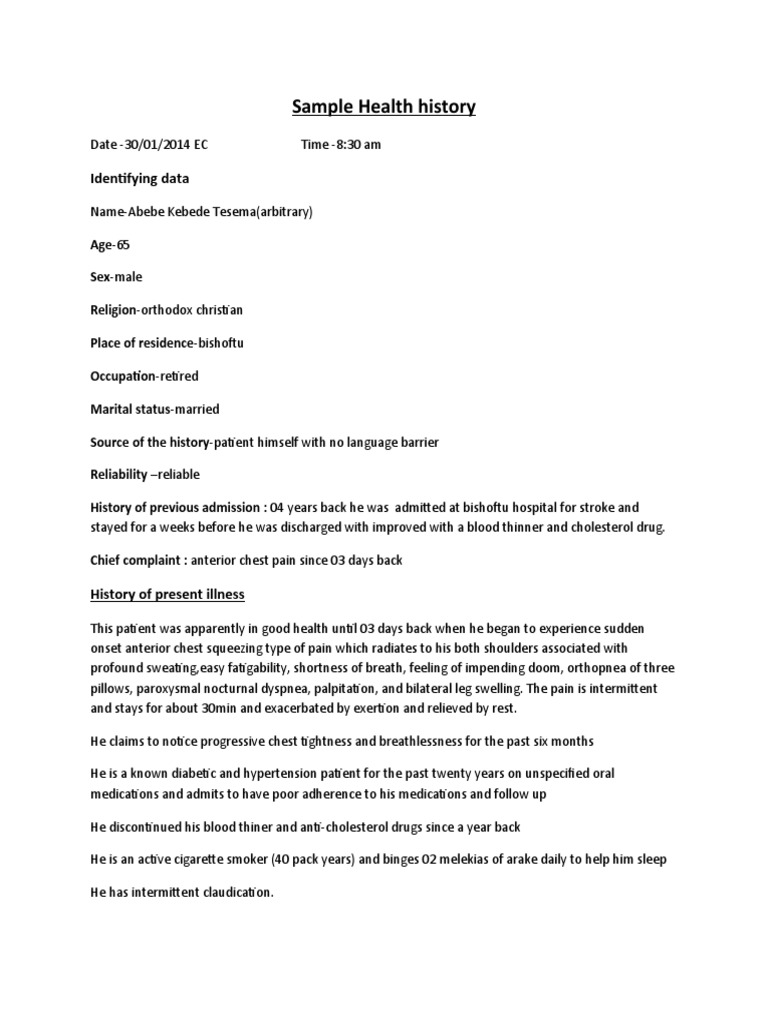 Sample Health history