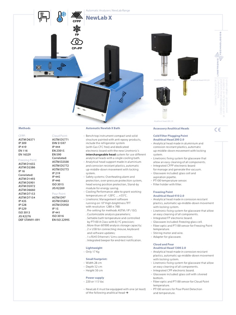 • NewLab X must be equipped with one (at least) • PT100 sensors for Pour Point Detection