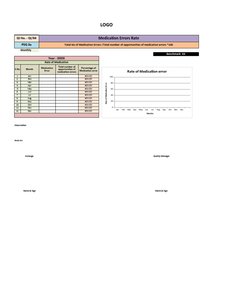 PSQ 3a Total No of Medication Errors /Total number of opportunities of medication errors *100
