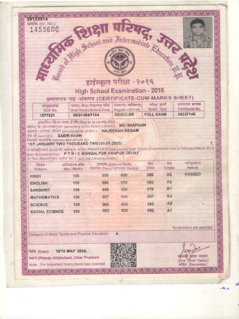 Leave Certificate: 08 May 2017 Tele/ Mob No Adjt-09596384093, MTO - 09596384093, SM