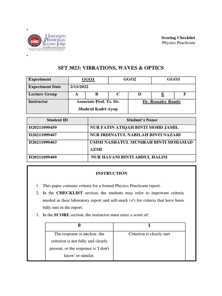 SFT 3023: VIBRATIONS, WAVES & OPTICS