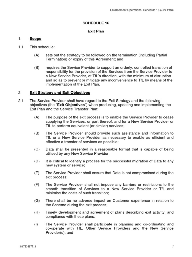 3.1 The Service Provider shall (at no cost to TfL) prepare an exit plan during the