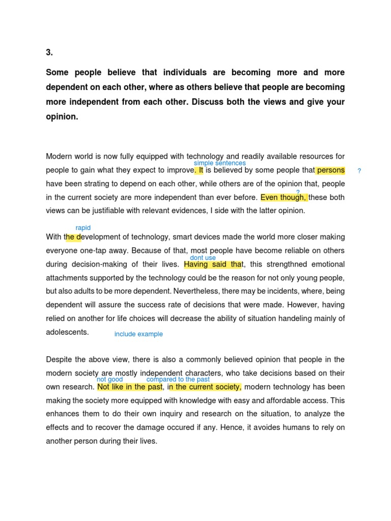have been strating to depend on each other, while others are of the opinion that, people