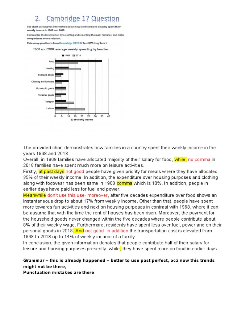 Overall, in 1968 families have allocated majority of their salary for food, while, no comma in