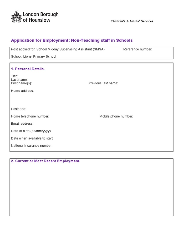 Post applied for: School Midday Supervising Assistant (SMSA) Reference number: