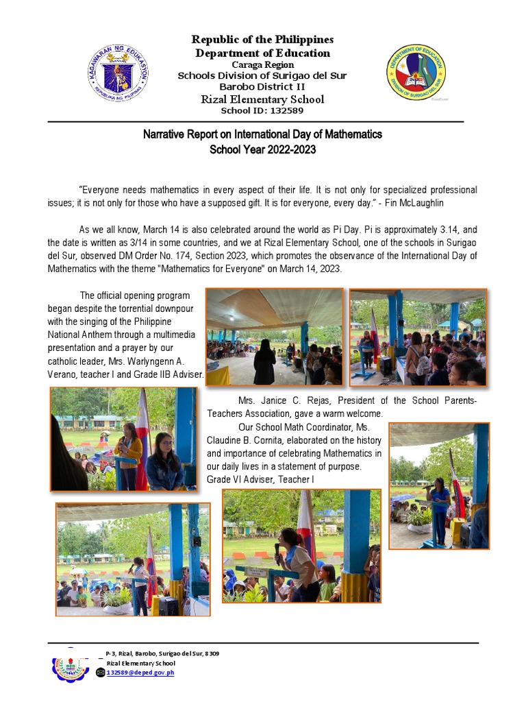 the date is written as 3/14 in some countries, and we at Rizal Elementary School, one of the schools in Surigao
