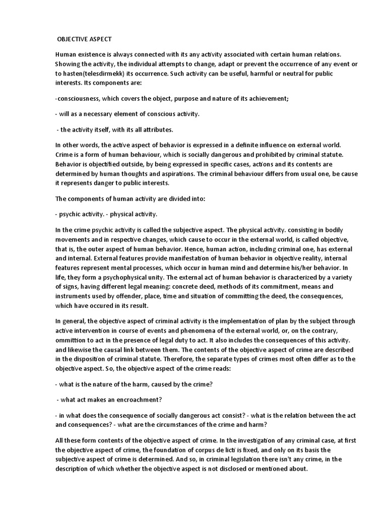 feature, as deed. Most completely the objective aspect of crime is reflected in the disposition of