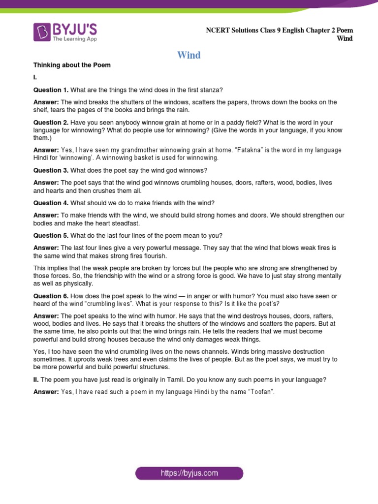 Question 6. How does the poet speak to the wind — in anger or with humor? You must also have seen or