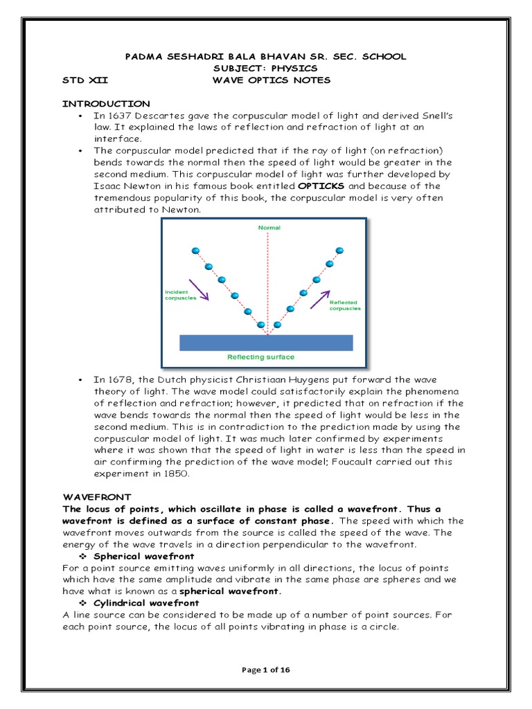 • In 1637 Descartes gave the corpuscular model of light and derived Snell’s